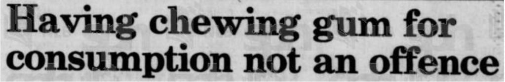 >> Ok, let me get this straight. You are allowed to bring chewing gum into Singapore. You will not be fined nor go to jail for bringing it in as long as they’re a reasonable amount.